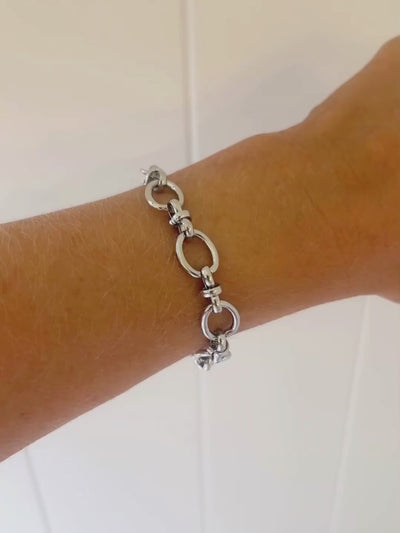 Lightweight, chunky oval link bracelet with 'bow' shaped connecter links and trigger clasp fastening.