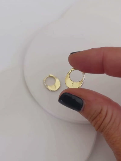 Slim gold huggies with twisted row of micro-stones to the front and back. Clip fastening.