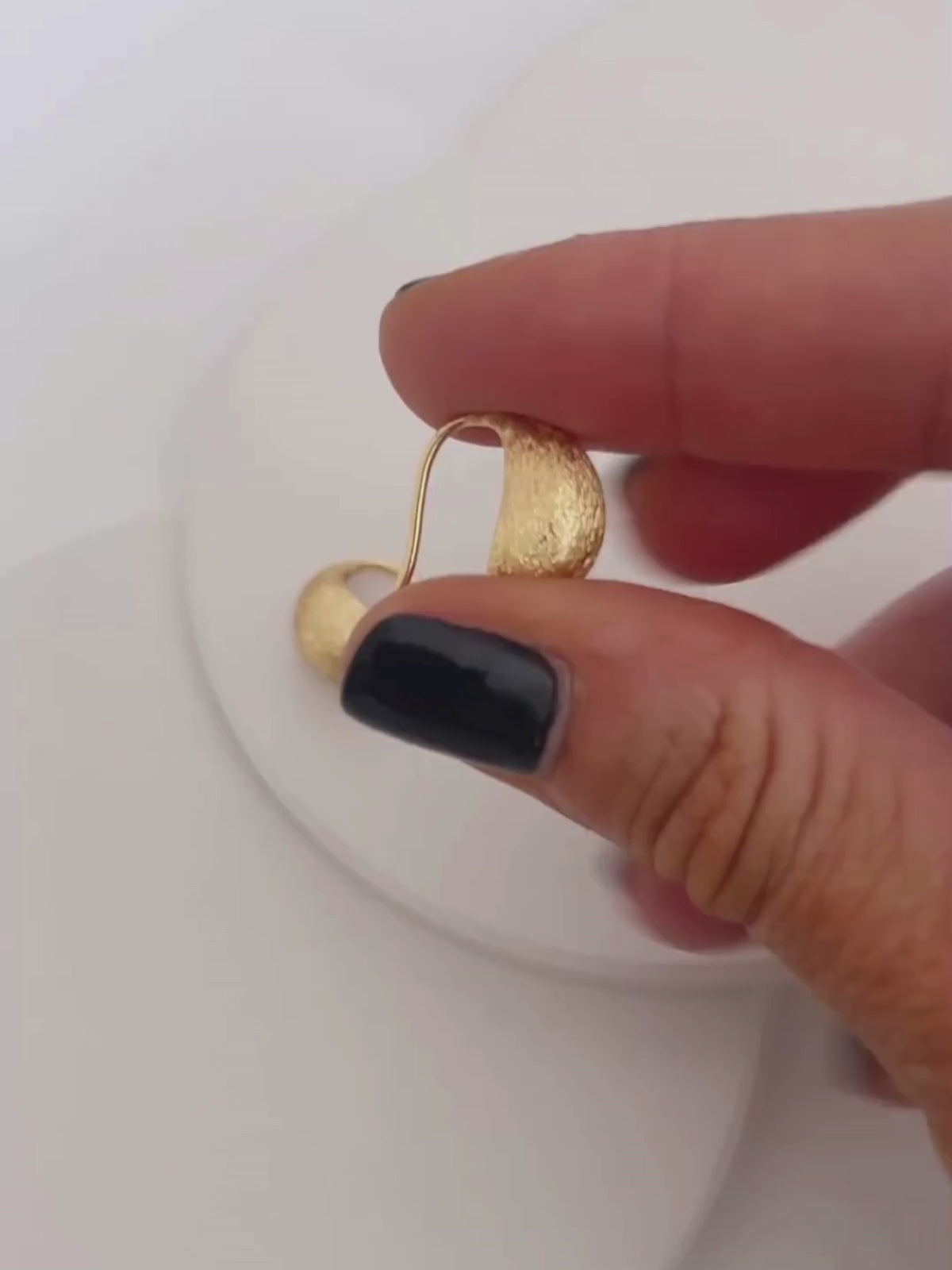 Gold bean-shaped textured earrings with hook fastening. Hollow design makes them lightweight and comfortable to wear.